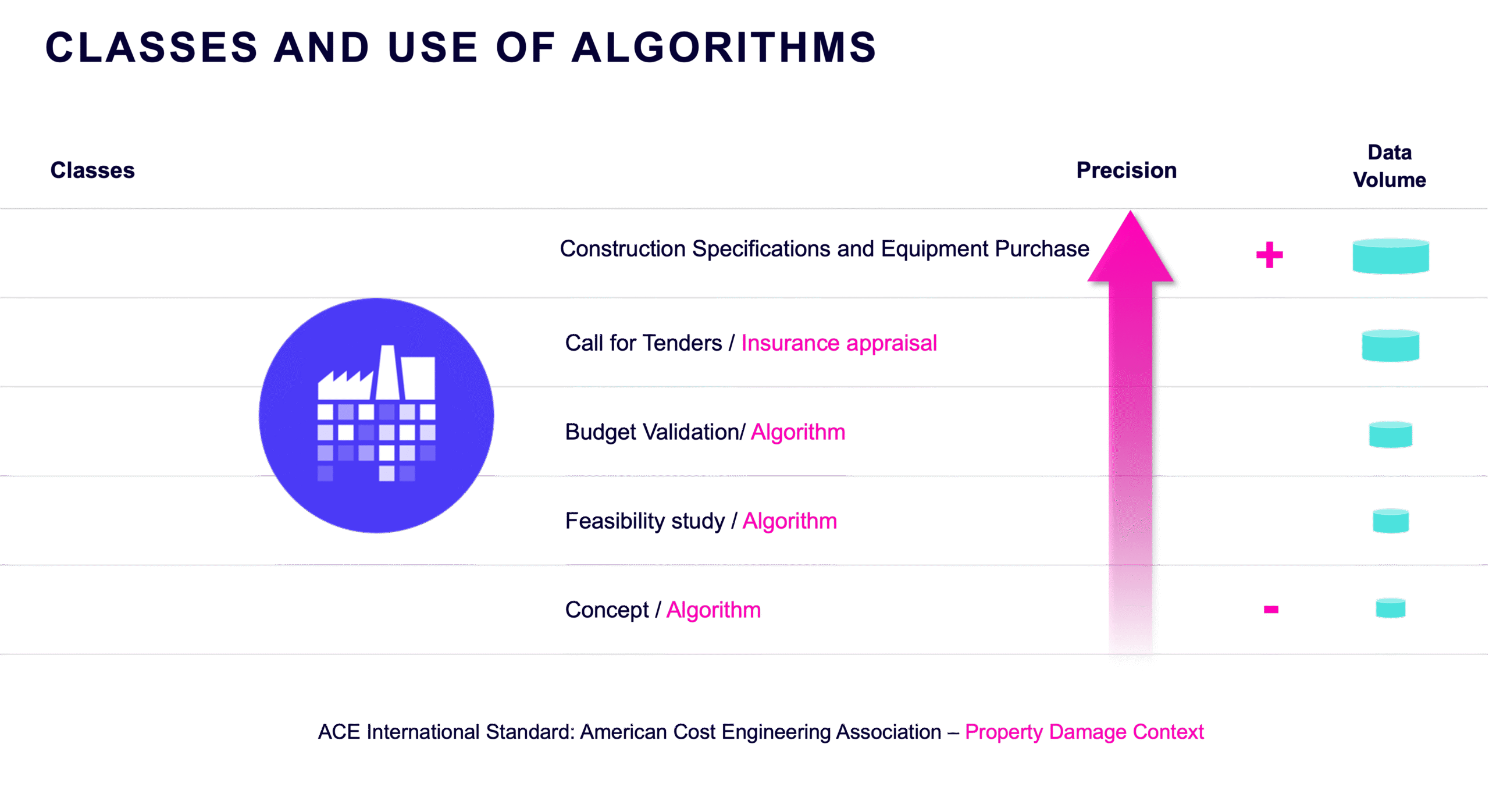 This algorithmic valuation standardizesthe valuation of assets and risks while reducing the workload on internal finance staff who work with values, different from insurance values (purchase, accounting depreciation, etc.).